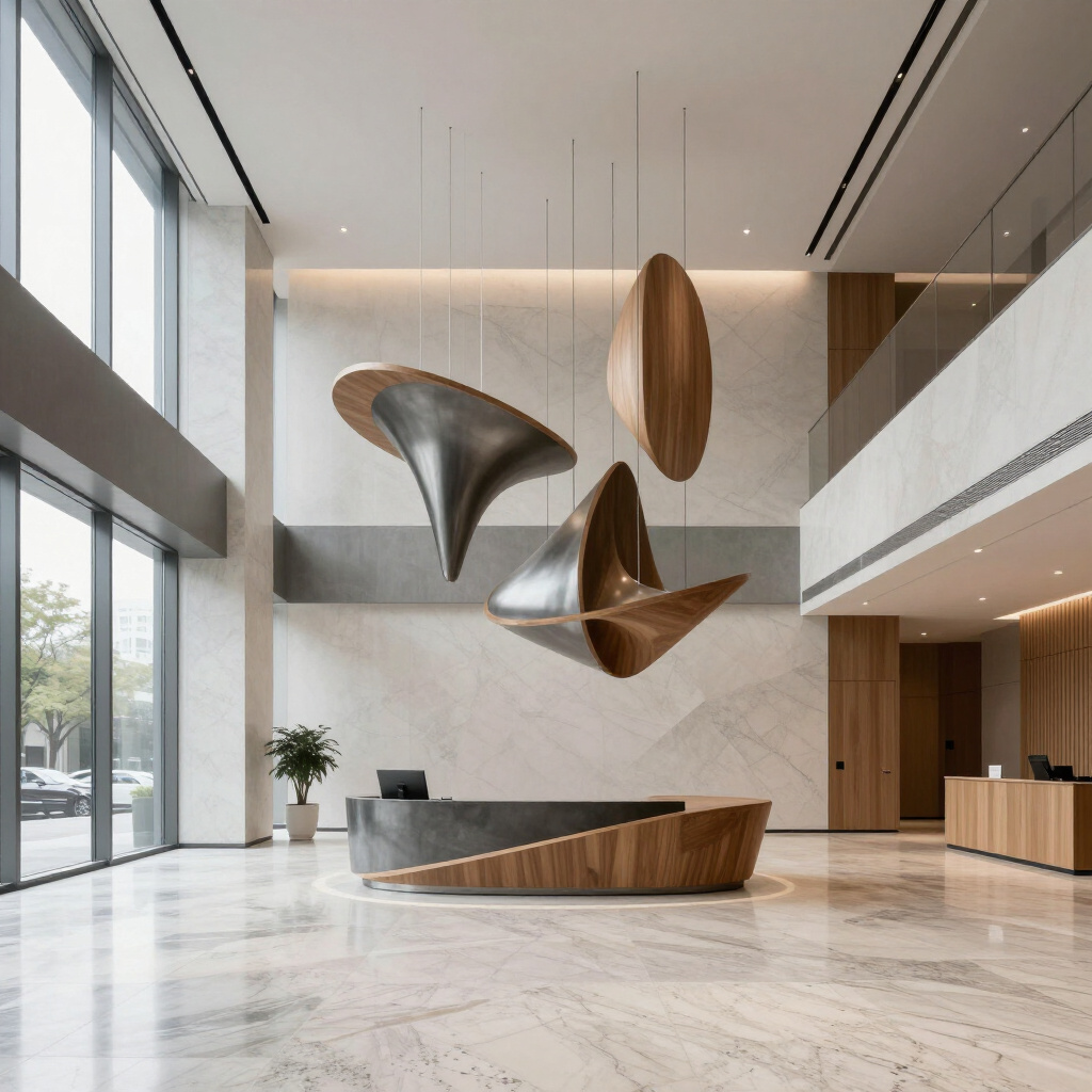 Enhancing internal environments with a focus on innovative materiality, natural lighting, and rhythmic structural flow.